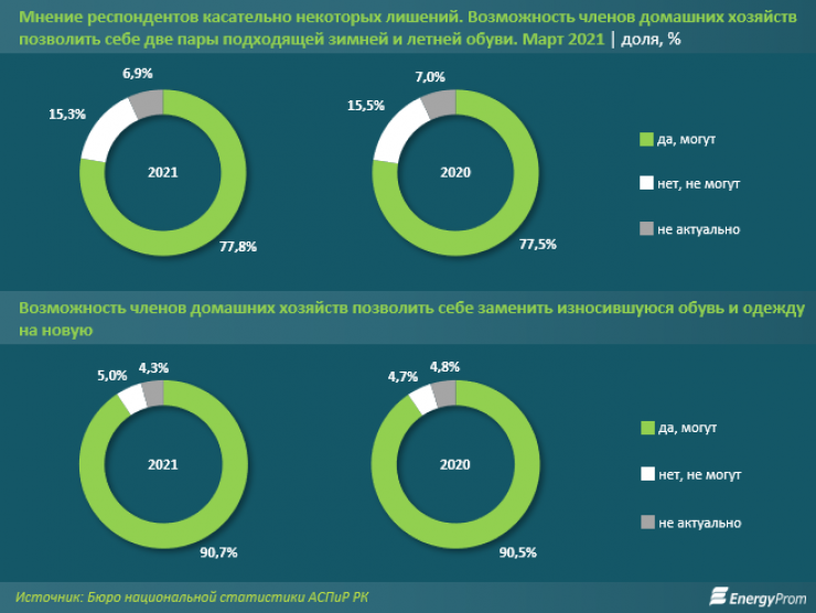 Что же до казахстанцев, которые не могут себе позволить заменить износившуюся обувь и одежду, доля таких граждан выросла с 4,7 процента до 5 процентов.