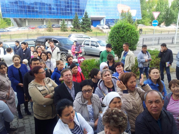 Все эти люди пришли в магазин за недостающими учебниками и школьными рабочими тетрадями. В очереди в основном родители и родственники первоклашек. Одни стоят за учебником по предмету "Самопознание", другим нужны рабочие тетради по математике, "Ана тiлi", казахскому языку. Но на деле список недостающих учебных пособий больше.