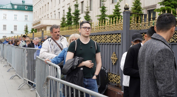 Фотографии с очередями из казахстанцев в Москве, желающих проголосовать на республиканском референдуме по поправкам в Конституцию, в своем Telegram-канале опубликовала пресс-служба Министерства иностранных дел, передает Tengrinews.kz.