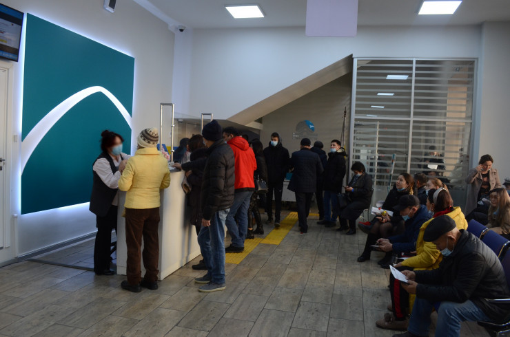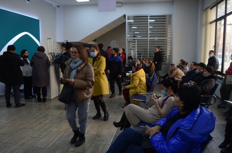 Большинство посетителей решили обратиться в банк, после того как в ЕНПФ сообщили о росте порога достаточности для снятия пенсионных накоплений с 2022 года почти в два раза. Многие граждане поспешили обратиться в банк, чтобы перечислить средства выше порога достаточности на счет в "Отбасы банке" для последующей покупки жилья.