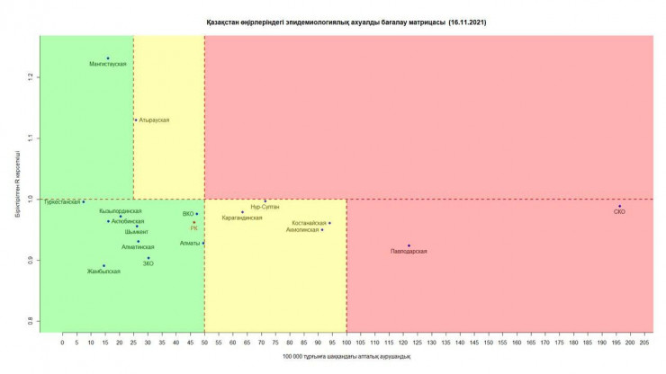 В "желтой" зоне: Нур-Султан, Атырауская, Акмолинская, Карагандинская, Костанайская области.