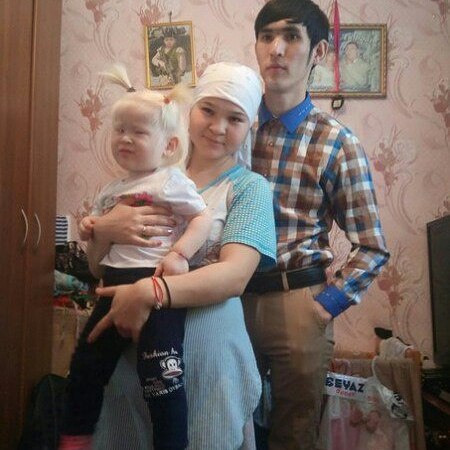 Дедушка белокурой малышки, Тулеген Куанов, метис. Его мать - русская, а отец - казах. Мужчина говорит, что беспокоится за здоровье своей внучки. "Мы боимся, что у нее ухудшится зрение. Врачи удивляются, что наша девочка альбинос", - говорит он. Сейчас родители девочки переехали из Аксая в Уральск.