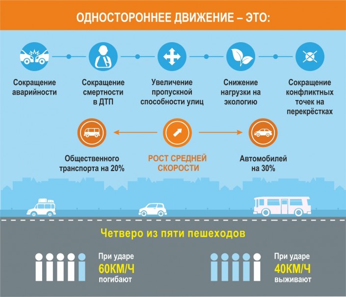 "Это решение сделает их более безопасными и, как ни странно, увеличит скорость потока. Сейчас средняя скорость движения транспорта из-за заторов и плотного трафика в городе не превышает 30 километров в час. Наибольшая загруженность наблюдается утром и вечером, когда люди едут на работу, а потом возвращаются домой. Односторонние улицы как раз и распределят существующие транспортные потоки. Это значит, что большинство автомобилистов почти не заметят перемен, а пешеходы, наоборот, ощутят повышение безопасности. По статистике, более 80 процентов людей, попавших под колеса автомобиля на скорости 40 километров в час - выживают, а вот при 60 шанс есть только у каждого третьего", - добавили в акимате.