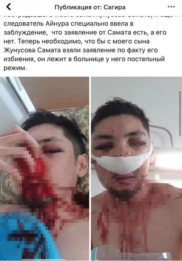 В свой день рождения, 25 сентября 2020 года, в пятницу, сын был в Астане. И так получилось, что свой день рождения он отмечал в кругу близких друзей в рестобаре, где позже произошло зверское избиение моего сына охранником этого заведения. Позже, немного придя в себя, он сам же вызвал наряд полиции, по времени это уже было около двух часов ночи, после чего его доставили в избитом состоянии, со сломанным носом в многопрофильную больницу.
