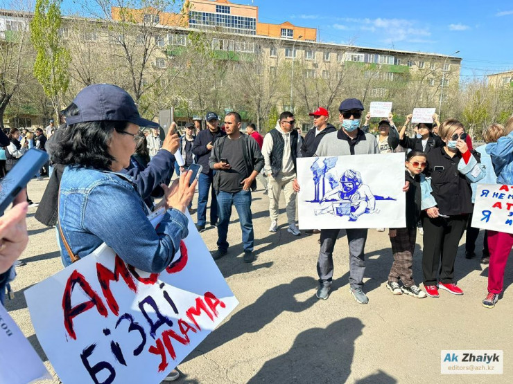 Большую часть участников митинга составляла молодежь, но было и немало людей преклонного возраста. У них в руках были плакаты с надписями "Легким не хватает воздуха", "Дышать нечем", "Атырау, дыши", "Экология дороже прибыли", "АНПЗ, не трави нас", "Требуем выполнения статьи 198 Экологического кодекса РК".