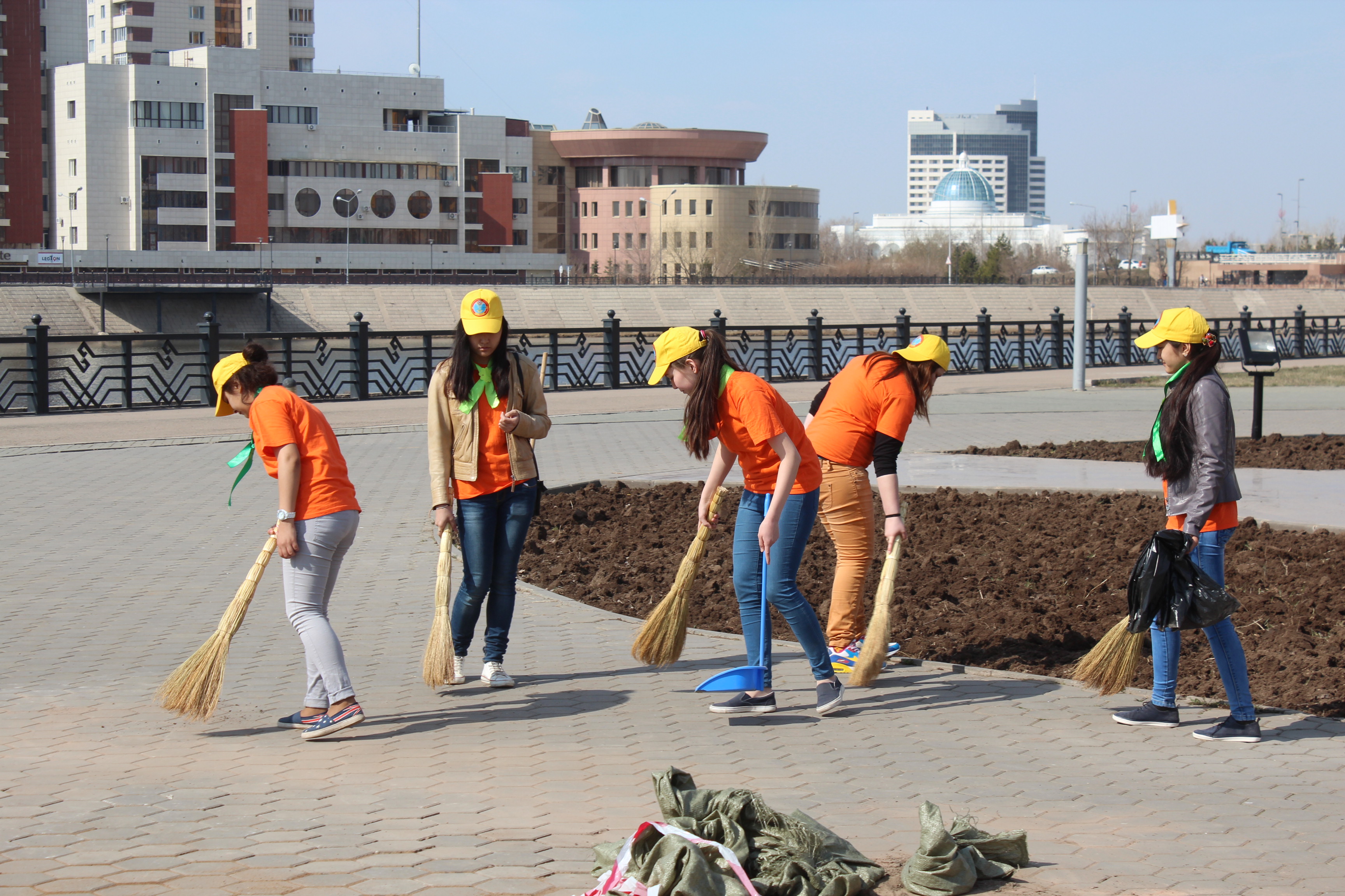 Около 100 тысяч жителей Астаны приняли участие в общегородском субботнике по благоустройству, озеленению и санитарной очистке территории столицы, который проходит в рамках весеннего экологического месячника.
