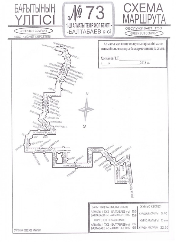 - маршрут № 73 "Вокзал Алматы-1 - улица Рихарда Зорге - улица Акан Серы - проспект Сейфуллина -улица Жансугурова - улица Тобаякова - проспект Сейфуллина - проспект Райымбека - улица Кунаева - улица Макатаева - улица Жетысуская - проспект Райымбека - улица Добролюбова - улица Оренбурская - ВОАД - улица Балтабаевская - улица Базарбаева - и в западном направлении улица Добролюбова - проспект Райымбека - улица Жетысуская - улица Макатаева - проспект Назарбаева и далее по маршруту".