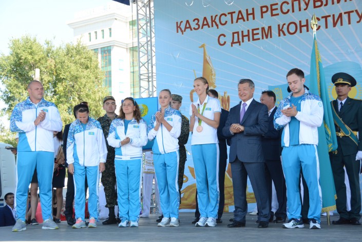 Сегодня в рамках торжественного мероприятия, посвященного Дню Конституции Республики Казахстан, в Усть-Каменогорске чествовали участников Олимпийских игр в Рио-де-Жанейро.