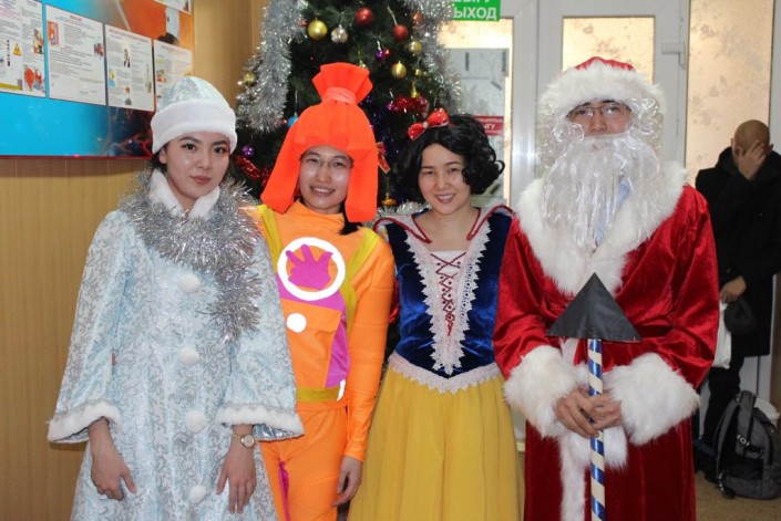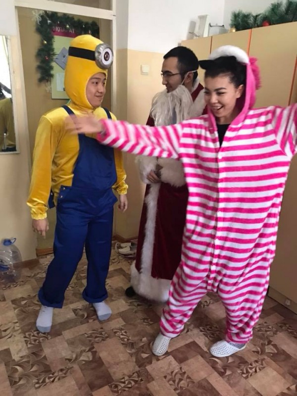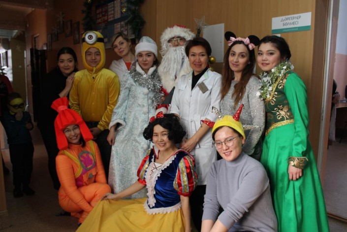 "Мы постарались максимально погрузить детей в мир мультфильмов. Сценарий для этого подобрали. Персонажи были взяты из современных мультиков и фильмов, чтобы дети узнали нас. Словами не передать те эмоции, которые получили малыши при виде всех мультяшек, и на миг мы себя почувствовали героями, как будто сами оказались в том сказочном мире. Вместе с Дедом Морозом и Снегурочкой пришли поведать наш праздник Белоснежка, Фиона, Фиксик и Миньон. Всем очень понравился наш сюжет, в том числе и конкурсы", - рассказывает резидент-онколог Арай Жунусбекова.