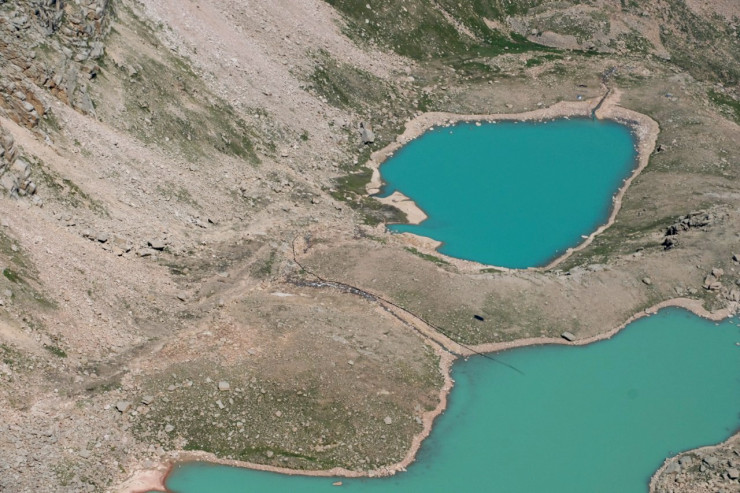 Глава МЧС Юрий Ильин и аким Алматы Ерболат Досаев совершили облет моренных озер в горах Алматы, передает корреспондент Tengrinews.kz.