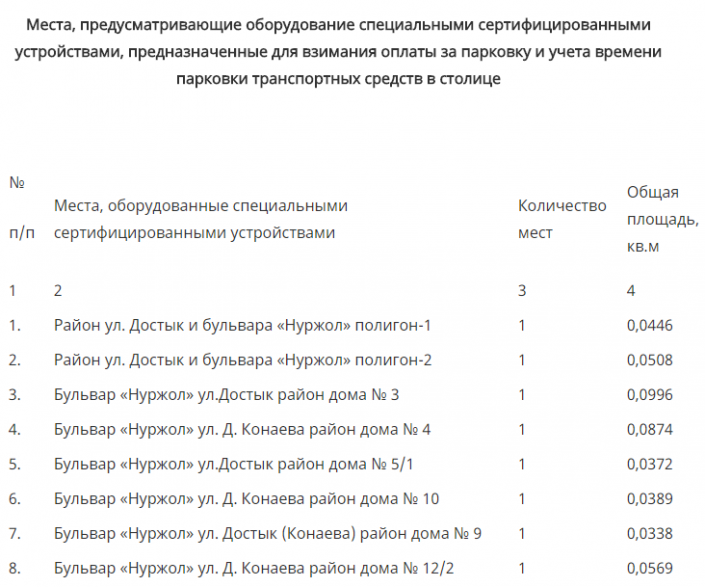 На сайте Elorda.info приводятся данные о местоположении платных парковок: