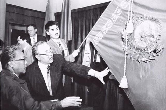 В Instagram Акорды появилось фото с подписью: "На пленарном заседании Верховного Совета, посвященном рассмотрению и утверждению государственных символов Республики Казахстан, 4 июня 1992 года".