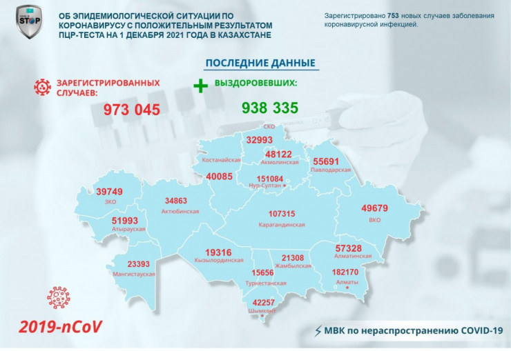 За прошедшие сутки (1 декабря) в Казахстане зарегистрировано 753 новых случая заболевания коронавирусной инфекцией, сообщает Tengrinews.kz со ссылкой на данные МВК по нераспространению COVID-19.