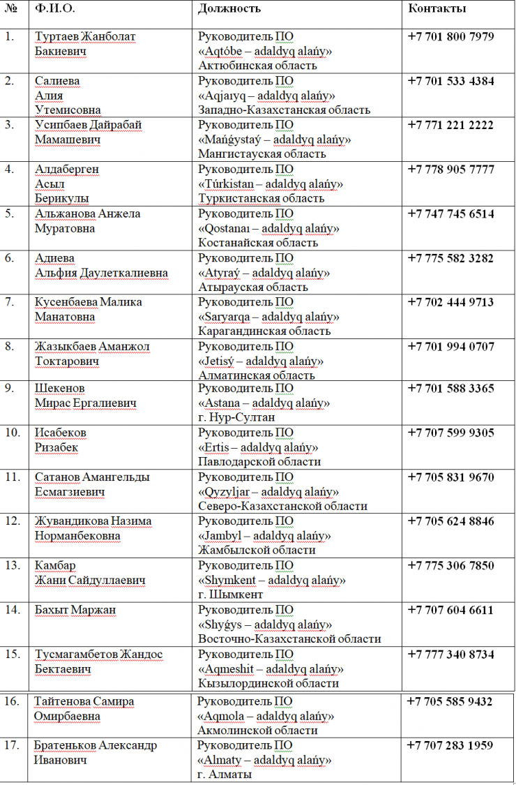 "Для продвижения ценностей проектного офиса и оперативного решения вопросов населения руководители региональных проектных офисов "Адалдық алаңы" назначены внештатными советниками акимов областей, городов Нур-Султан, Алматы и Шымкент по вопросам противодействия коррупции.