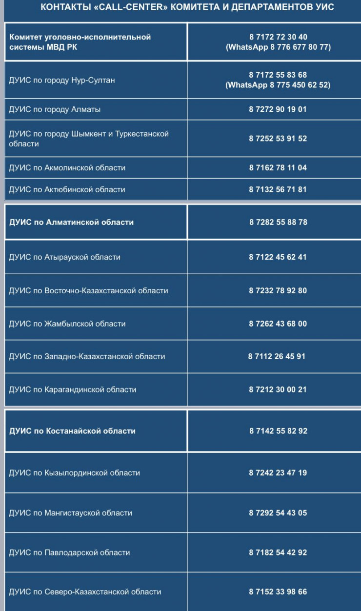 "В комитете и во всех региональных департаментах организованы call-центры, куда вы можете обратиться, чтобы получить информацию о лицах, содержащихся в следственных изоляторах, и другим интересующим вас вопросам. В эти call-центры могут обращаться также и адвокаты. Хочу заверить, что нами принимаются все необходимые меры по неукоснительному соблюдению конституционных прав граждан", - заявил на пресс-конференции СЦК заместитель председателя КУИС Мейрам Аюбаев.