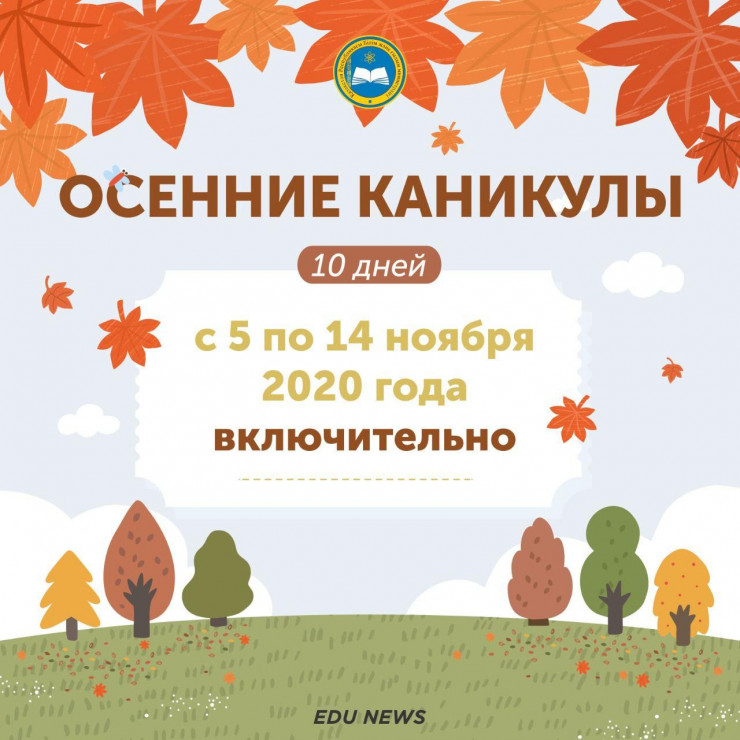 "Осенние каникулы для школьников составляют 10 дней и продлятся с 5 по 14 ноября включительно", - говорится в сообщении.