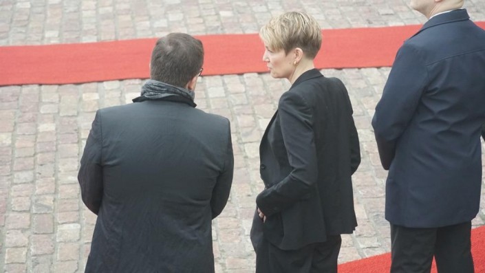 Женщина на верхнем фото справа - пресс-секретарь президента Финляндии.