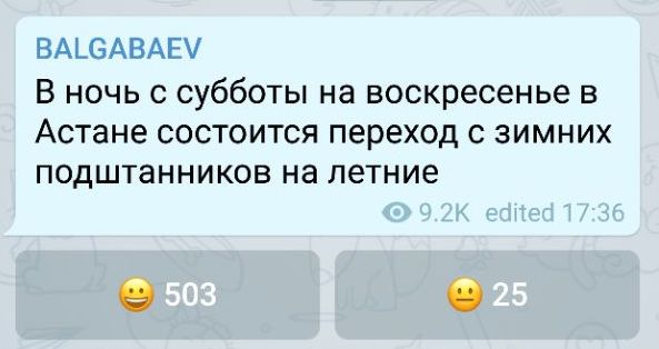 "В ночь с субботы на воскресенье в Астане состоится переход с зимних подштанников на летние".