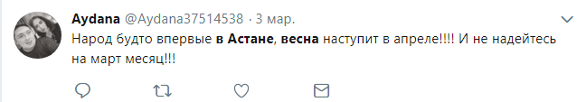 Весна в Астане никак не вступит в свои права. Жители столицы шутят о затяжной зиме в социальных сетях. Редакция Tengrinews.kz собрала публикации, посвященные погоде в Астане.