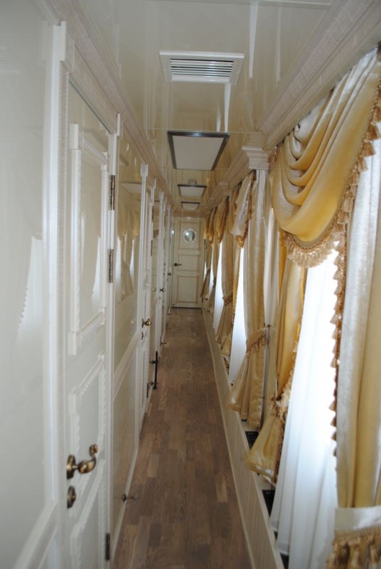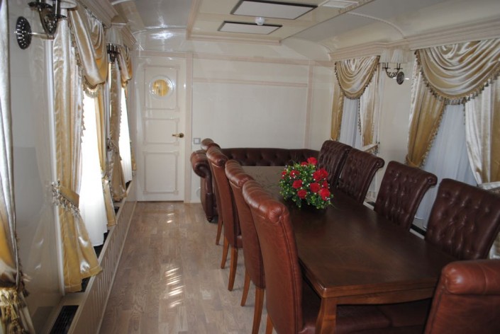 По его словам, всего в вагоне семь посадочных мест. Также Ботабеков рассказал, что вагон сдается в аренду в районе 100-130 тысяч тенге за 1000 километров для поездки в любом направлении. В нем имеется кинотеатр, душевая, свой проводник и официант. Часто вагон берут семьи для поездок на Алаколь или на EXPO в Астану. Его также называют "гостиницей на колесах".