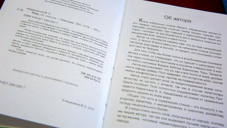 Первые свои стихи и прозу я написал еще в 12 лет. После перестал. Потому что в тот момент я заинтересовался философией и прочел большое количество книг, начиная со слов назидания Абая, стихотворений Пушкина и заканчивая мыслями древнегреческого философа Аристотеля. Именно поэтому моя первая книга вышла под называнием "Чтец" - потому что много читал", - говорит Мурат.