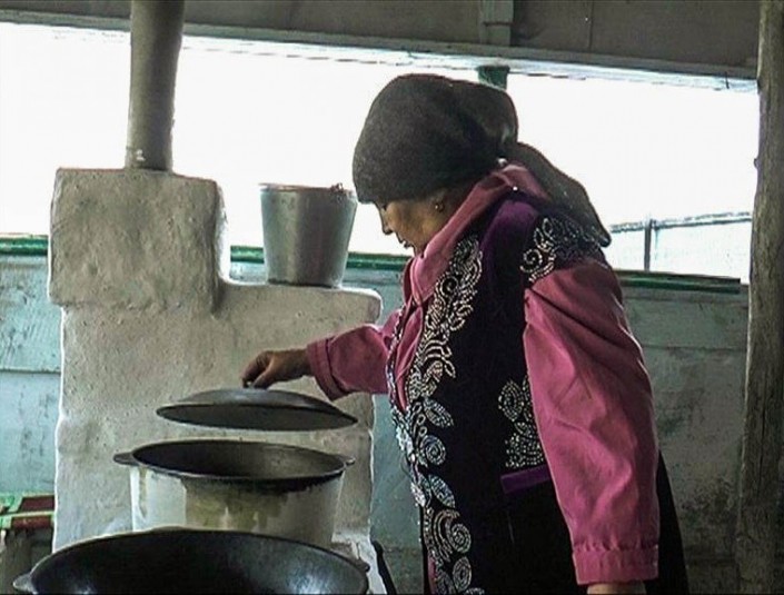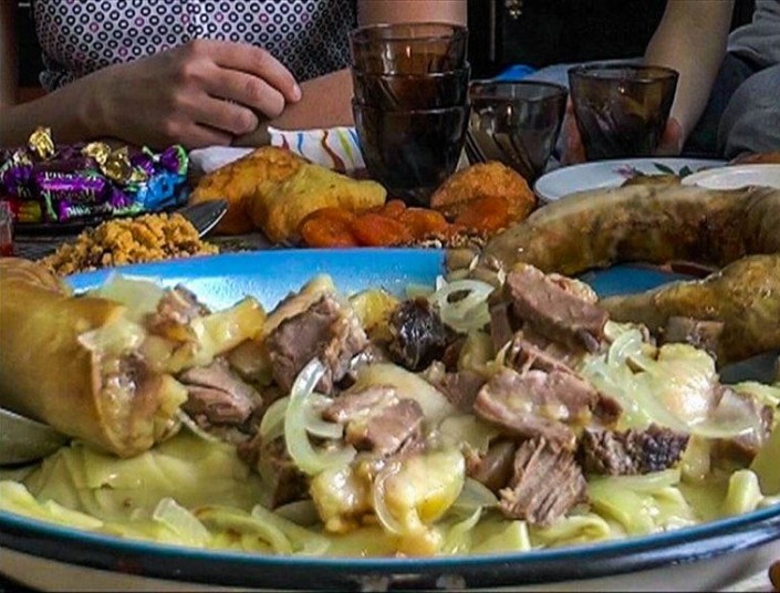 Настроение у Орынша апа хорошее - в процессе напевает песню на казахском языке. В ее "фирменный" Наурыз коже входят семь основных ингредиентов: перловка, рис, мясо, мука, вода, айран и соль. Орынша апа делает его только раз в году, поэтому у всей семьи оно ассоциируется именно с наступлением весны. Варит не на плите, а на печке. Говорит, что так получается вкуснее, вкус ярче. Тем временем невестка Айгерим делает казахские сладости - коспа. Рецепт переняла у свекрови. Ну а какой праздничный стол без баурсаков? Их Орынша апа готовит сама.