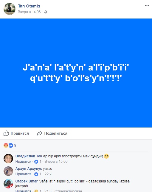 Казахстанские пользователи социальных сетей начали выкладывать посты на латинице, передает Tengrinews.kz