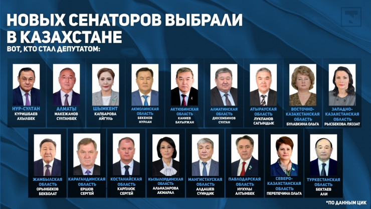 По итогам дня голосования депутатами Сената Парламента Республики Казахстан избраны: