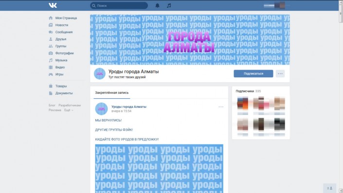 Паблик "Уроды Алматы" заблокировали по требованию МИК РК
