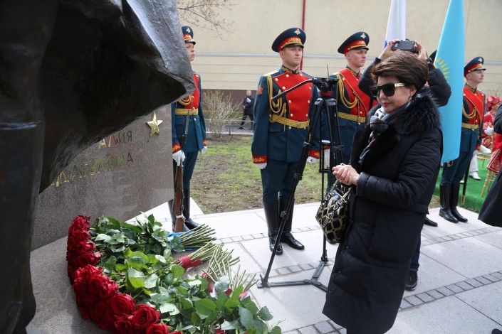 "Мы не просто увековечиваем память о нашей отважной землячке, а отдаем дань уважения всем героям Великой Отечественной войны, в том числе защитникам Ленинграда. Война все дальше уходит в прошлое, но люди разных поколений всегда будут помнить те трагические годы и горе миллионов людей. 19-летняя Алия была одной из лучших. И не только потому, что уничтожила из своего снайперского оружия 78 фашистов. Она осознанно пожертвовала молодостью и жизнью во имя нашей общей Родины", - сказал на открытии посол Казахстана в России Имангали Тасмагамбетов.