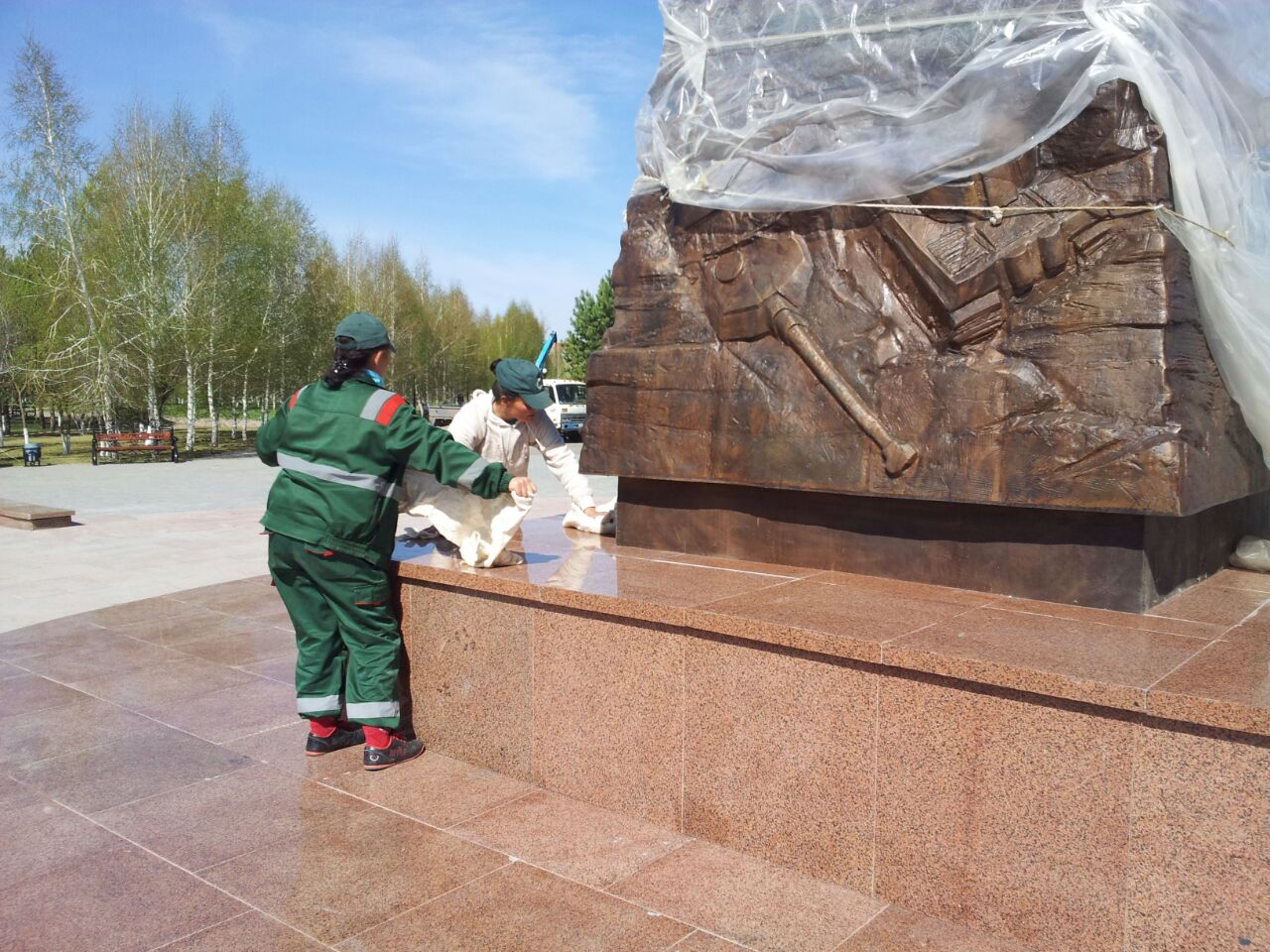 К открытию памятника практически все готово. Рабочие наводят чистоту и порядок на территории парка.