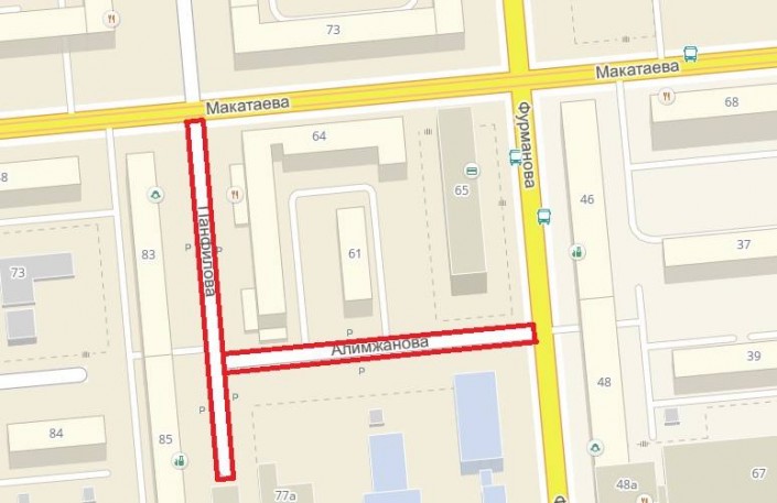 Новый участок платной парковки расположен по улице Панфилова, на территории от улицы Макатаева до улицы Жибек Жолы и продолжается по улице Алимжанова от улицы Панфилова до улицы Фурманова.