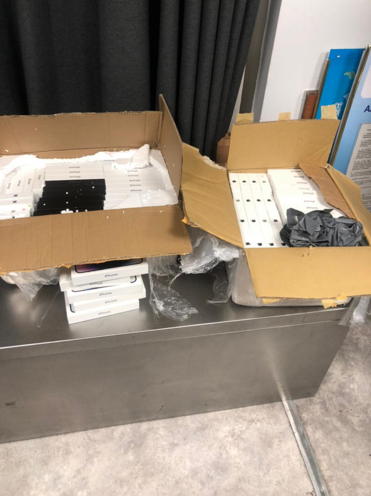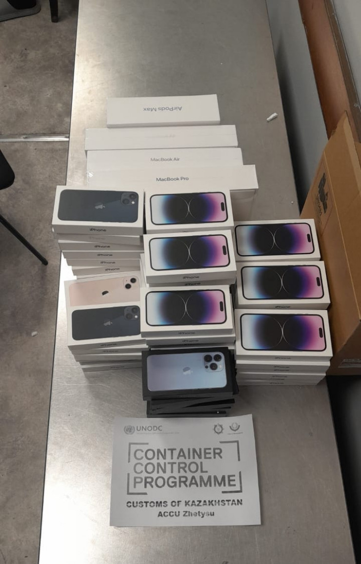 Инцидент произошел 12 октября во время досмотра багажа пассажиров, прибывших рейсом Дубай - Алматы. В ходе таможенного контроля выявлены незадекларированные iPhone 14 и iPhone 13, а также Macbook и AirPods. Общее количество контрабандного товара составляет 70 штук.