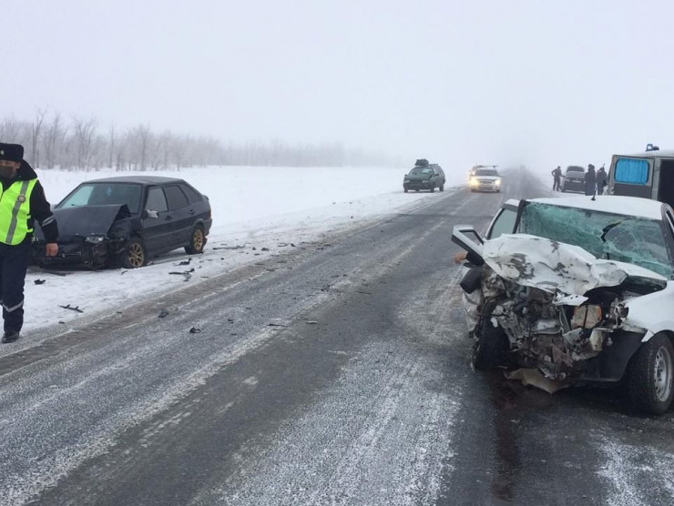 В полиции сообщили, что авария произошла утром 30 января около 10.30 на трассе Уральск - Атырау. Возле села Алгабас столкнулись автомобили Lada Granta, Volkswagen Passat, Toyota Camry, ВАЗ-2114, Chevrolet Aveo.