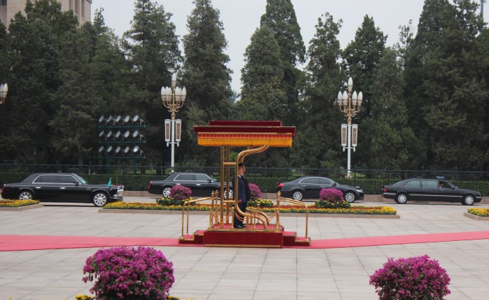 Торжественная церемония встречи Нурсултана Назарбаева по случаю его государственного визита в КНР началась с того, что к зданию Всекитайского собрания народных представителей его подвезли на автомобиле "Красный флаг" - машине для самых высоких лиц.