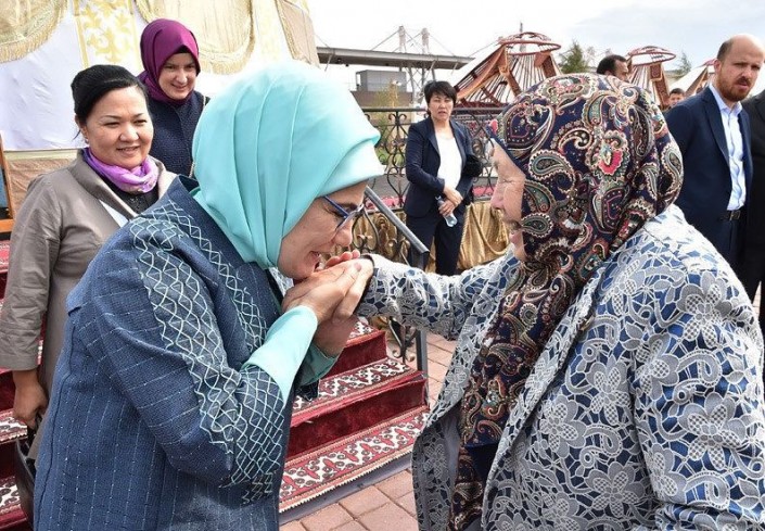 Первая леди Турции восхитила пользователей, поцеловав руку казахской бабушке © instagram