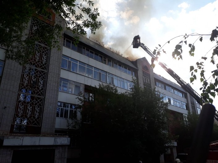 По данным пресс-службы КЧС МВД, вызов поступил в 17.52. Площадь пожара устанавливается. На месте работает 15 единиц техники и 55 человек личного состава ДЧС, проводится эвакуация. Пострадавших нет.