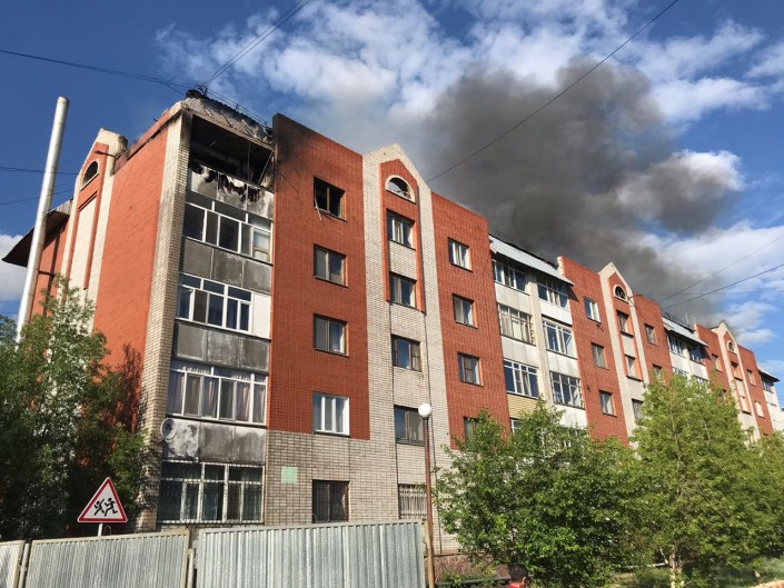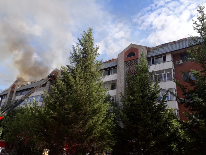 Крыша пятиэтажного дома горела в Астане, предварительная площадь пожара составила 600 квадратных метров, передает корреспондент Tengrinews.kz.