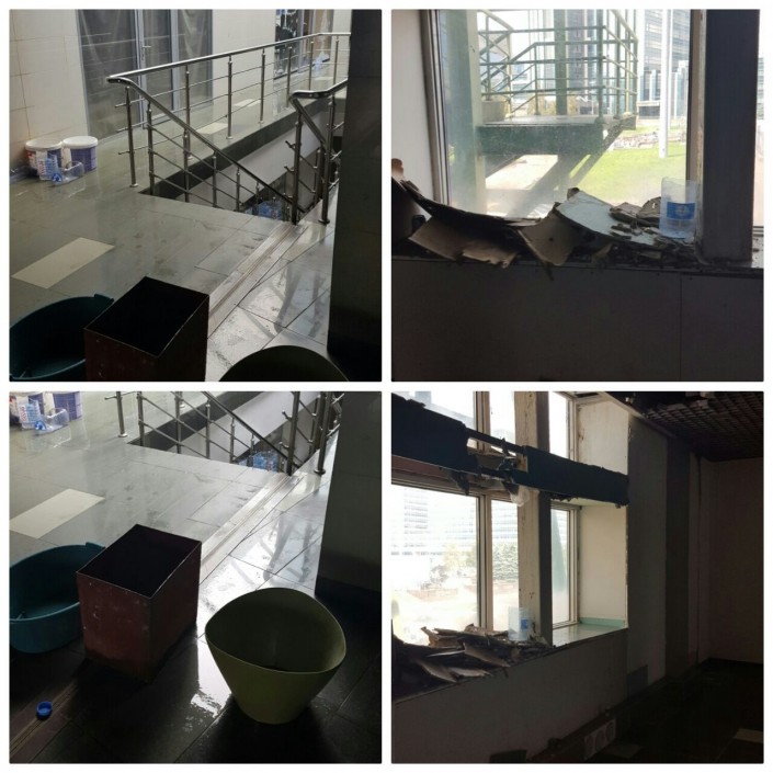 "По проекту изначально у нас должны были быть фонтаны, зимний сад, бассейн, детский сад. Ничего из этого практически нет. (...) С 2011 года у нас идет протекание пандуса, галереи, были деформации с наружной части витрин-стекол, которые снаружи самого ЖК. Они были изначально деформированы. Общий холл, который объединяет все три дома жилого комплекса, находится под пандусом. Чтобы попасть в подъезд дома, мы должны пройти через этот общий холл. Этот холл у нас каждое межсезонье протекает. Там не просто водичка капает. Там идет мощный поток воды", - рассказала Дина Абдикенова корреспондентам Tengrinews.kz.