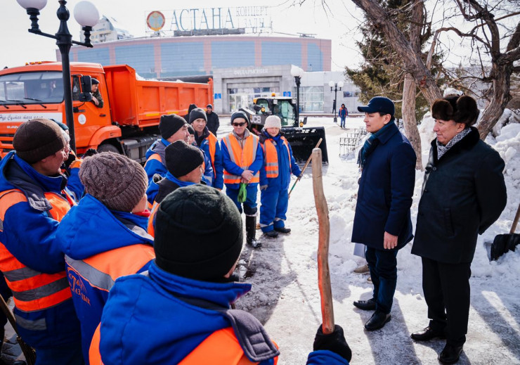 "По 2-3 дня домой не ездили". Кульгинов поблагодарил коммунальщиков за работу Фото акимата Нур-Султана