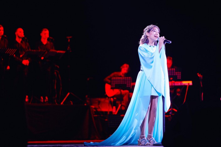 В Украине талантливую девочку заметил генеральный продюсер престижной украинской музыкальной премии YUNA Павел Шилько. Он предложил ей выступить на концерте Sting Tribute Show, посвященном творчеству британского исполнителя Стинга. Девочка согласилась и стала самой юной артисткой яркого международного шоу в Киеве. Казахстанка выступила на одной сцене с мировыми звездами и исполнила хит музыканта Field of Gold в сопровождении симфонического оркестра.