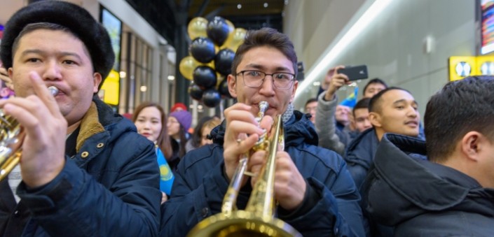 Встречать победителей в аэропорту "Нурсултан Назарбаев" прибыли болельщики, друзья и родственники членов команды. Также поздравить сборную с победой приехали руководитель Управления внутренней политики Астаны Ерлан Каналимов, руководитель Управления по вопросам молодежной политики Асхат Оралов и шоумен Нурлан Коянбаев.