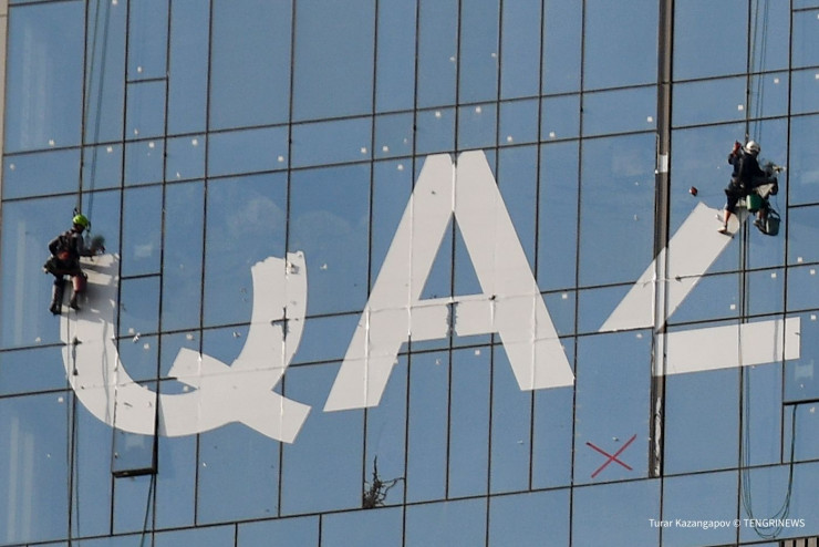 "Стикер Qazaqstan был смонтирован год назад, и на данный момент материал уже пришел в негодность. В связи с этим мы проводим демонтаж стикера. Cтикеры такого размера демонтируются несколько дней (так же как и монтаж таких материалов не происходит за один день)", - сообщили в PR-отделе "Абу-Даби Плаза".