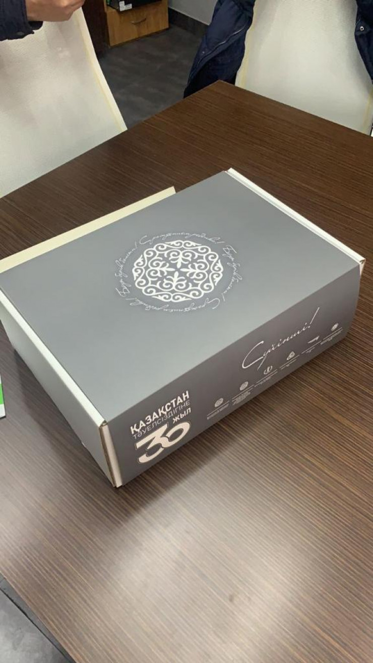 Сообщается, что на дом упаковано свыше 100 подарочных наборов, остальные боксы переданы в "Казпочту" для доставки.