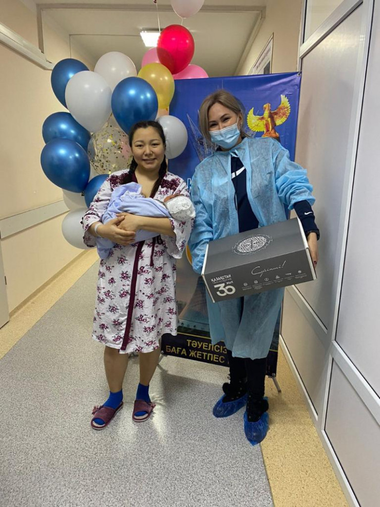 "Подарочные коробки "Сүйінші" содержат товары первой необходимости для младенцев. Туда положена поздравительная открытка от имени Президента Республики Казахстан Касым-Жомарта Токаева, памятная монета, выпущенная в честь 30-летия независимости страны, и свидетельство о рождении ребенка. Тем, кого уже успели выписать, подарки развозили по домам совместно с "Казпочтой", а кому-то вручали в роддомах. Наши сотрудники объезжали родильные дома и брали напрямую у рожениц заявления на получение свидетельства о рождении их детей. Данные пересылались органам РАГС для изготовления документа. На протяжении всех праздничных дней сотрудники ЦОНа, отделов РАГС, медучреждений, "Казпочты" работали над подготовкой этих боксов", - проинформировала заместитель директора филиала госкорпорации "Правительство для граждан" по городу Нур-Султану Сабина Тауан.