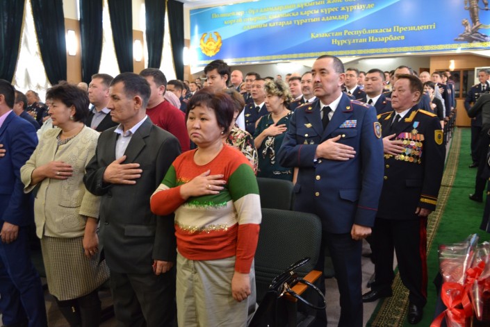 "25-летие Независимости Казахстана - это знаковое историческое событие для нашей страны. От имени руководства Министерства внутренних дел и от себя лично разрешите поздравить личный состав ДВД города Алматы, ветеранов органов внутренних дел, родных и близких наших сотрудников и ветеранов с национальным праздником - Днем Независимости Казахстана. Следует отметить, что благодаря усилиям Главы государства и всех казахстанцев за столь короткий период мы смогли построить современное сильное государство и стали полноправным участником мирового сообщества. Безусловно, динамичное развитие нашего государства было бы невозможным без обеспечения должного правопорядка и безопасности, защиты прав и интересов граждан и государства, на страже которых стоят органы внутренних дел. История казахстанской полиции насчитывает бесчисленное количество примеров героизма, мужества и самоотверженности личного состава, которые находясь на переднем крае борьбы с преступностью, ежедневно подвергают свою жизнь и здоровье огромному риску. За годы Независимости Казахстана при исполнении служебного долга погибли 837 сотрудников органов внутренних дел, почти 3 тысячи получили ранения. За проявленную отвагу и образцовое исполнение служебных обязанностей около 1100 сотрудников награждены государственными наградами и, к сожалению, 115 из них посмертно. Два офицера удостоены высокого звания "Халық қаһарманы" - капитан полиции Газиз Байтасов и полковник Кайрат Умбетов", - особо отметил заместитель министра внутренних дел РК Берик Бисенкулов.