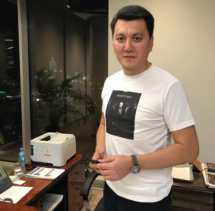 Председатель правления телерадиокорпорации "QAZAQSTAN" Ерлан Карин надел футболку с нашумевшей фотографией Нурсултана Назарбаева, сообщает Тengrinews.kz.