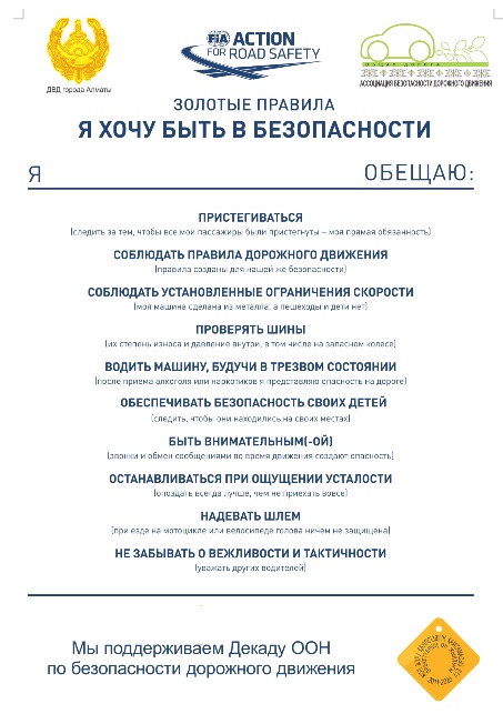 Фото с подписанным обещанием будут выкладываться в социальных сетях со следующими хештегами: #яобещаю #золотыеправила #goldenrules #ipromise #дорожнаябезопасность #roadsafetykz.
