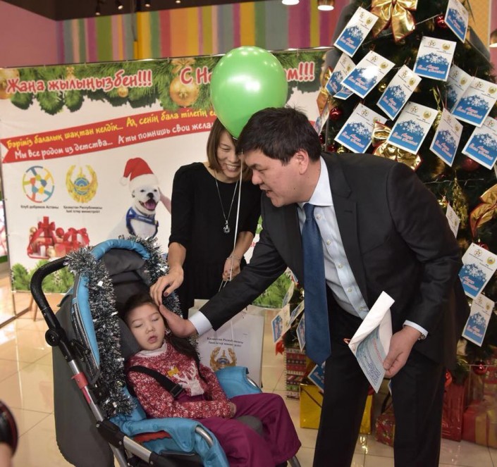 "Друзья, совместно с клубом добряков Астаны в ТРЦ "Сарыарка" мы установили новогоднюю елку желаний, которую украсили письмами детей с ограниченными возможностями здоровья и оказавшихся в трудной жизненной ситуации. Исполнять желания будут наши сотрудники. В течение десяти дней они порадуют ребят подарками, о которых те давно мечтали", - написал Алмас Садубаев на своей странице в Facebook.