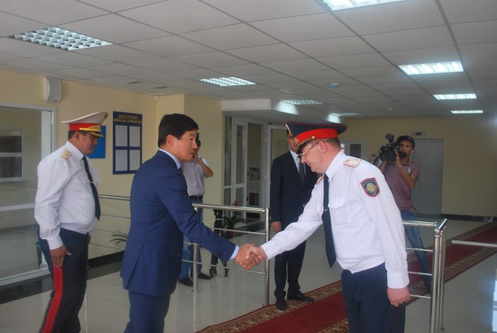 Новый офис полицейских посетил аким Алматы Бауыржан Байбек. Аким Алматы ознакомился с материально-техническим оснащением подразделения и принял участие в рабочем совещании алматинского гарнизона полиции, где были подведены итоги 7 месяцев работы ДВД.